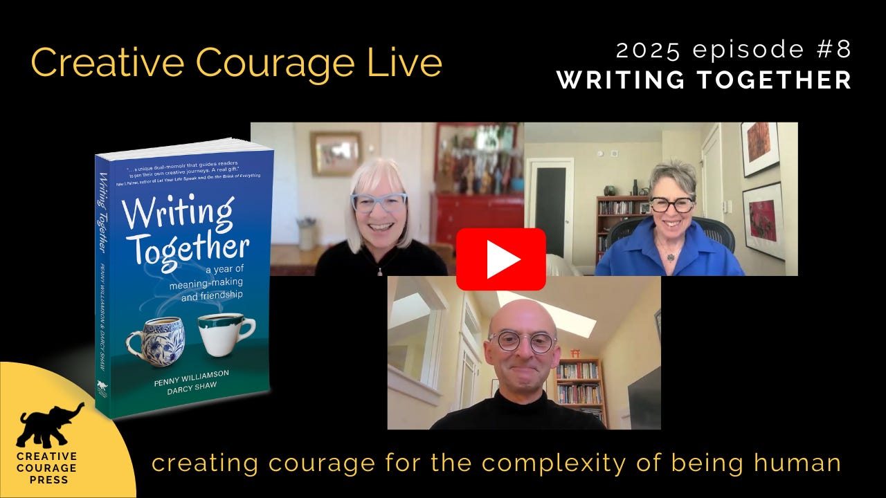 I’m excited to announce the newest book from Creative Courage Press: Writing Together: A Year of Meaning-Making and Friendship. Enjoy this episode of Creative Courage Live featuring friends and co-authors Penny Williamson and Darcy Shaw. Their unique dual-memoir and creative guide is for anyone who has ever felt intimidated by writing, who have stories waiting to be explored, or who long for a deeper connection with a friend.